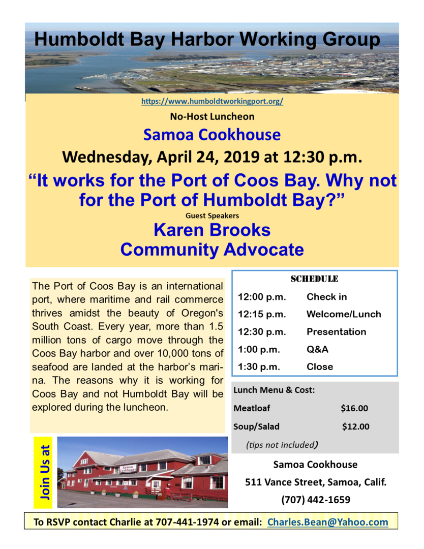 RSVP: 707-441-1974; or by Email: luncheon@humboldtworkingport.org
